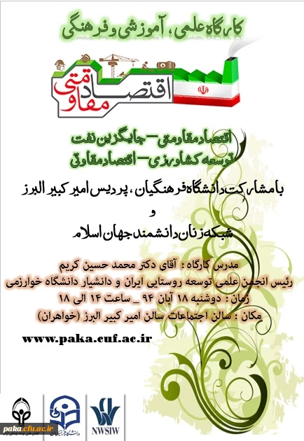 امتیاز دهید : زمان برگزاری کارگاه علمی،آموزشی و فرهنگی اقتصادمقاومتی اعلام گردید. 2 پنجشنبه 14 آبان 1394 ساعت 13:34