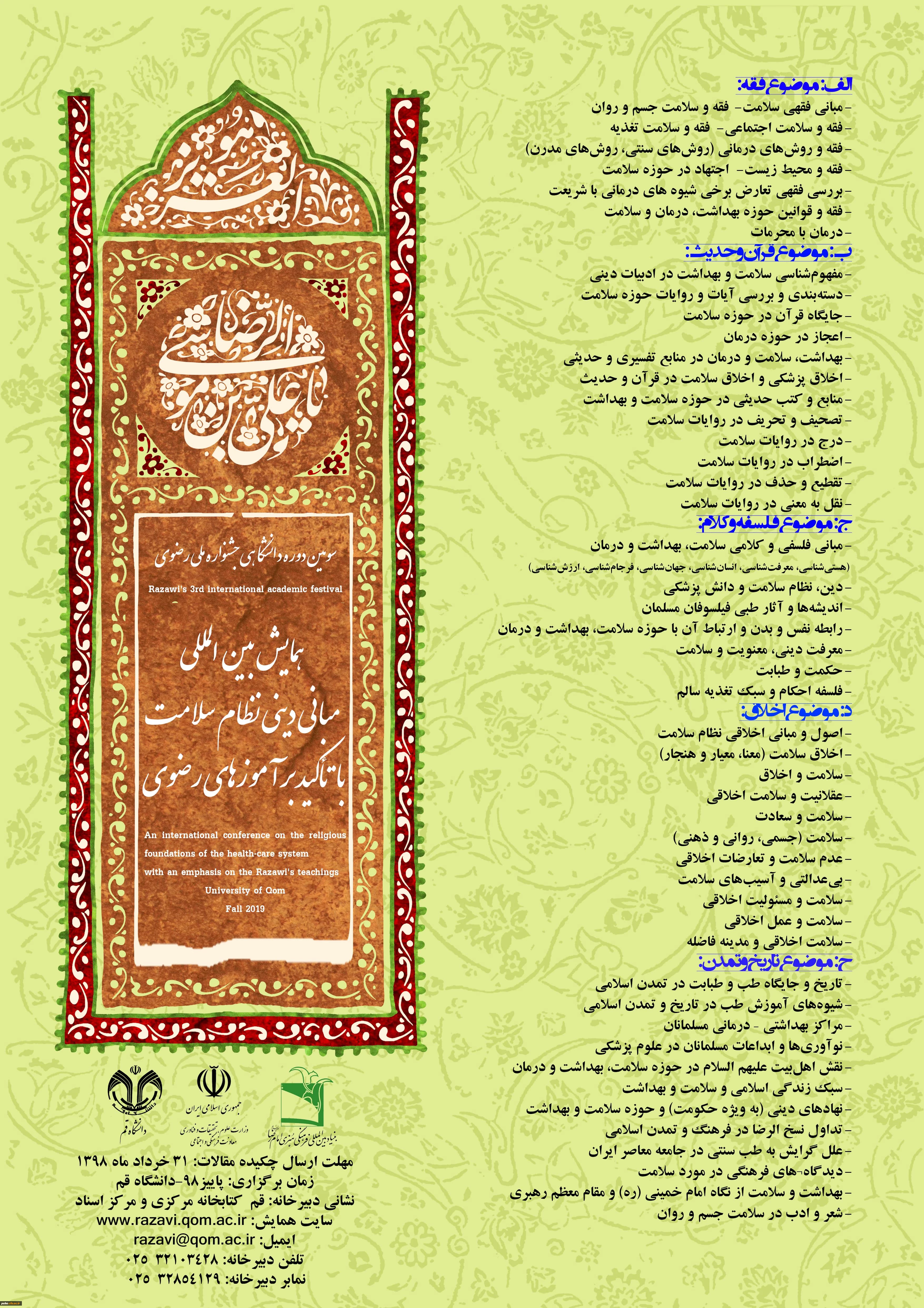 امتیاز دهید : همایش بین المللی " مبانی دینی نظام سلامت ، با تأکید برآموزه های رضوی " 2 دوشنبه 13 خرداد 1398 ساعت 11:36