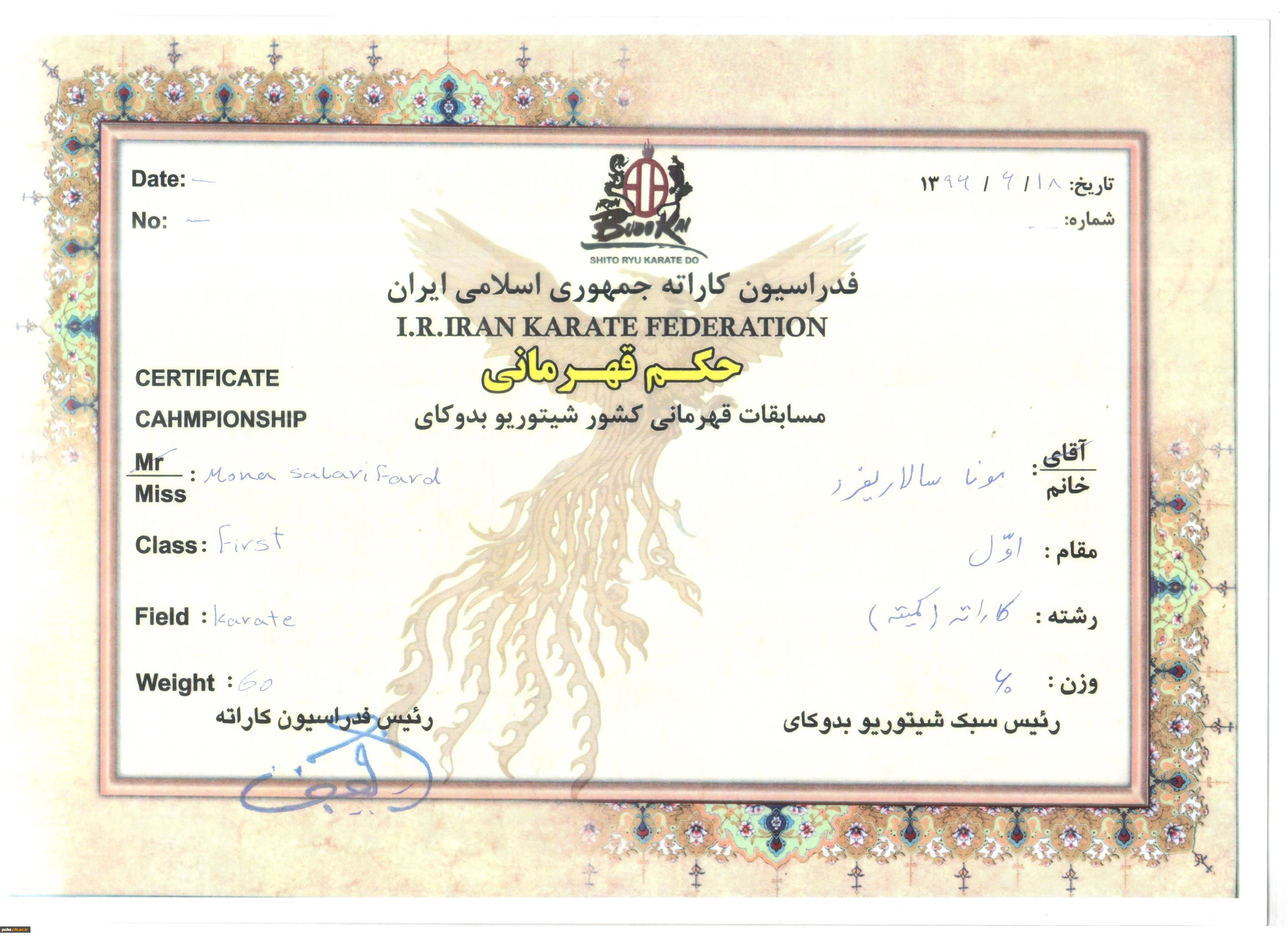 امتیاز دهید : افتخار آفرینی خانم مونا سالاری فرد در سیزدهمین دوره مسابقات کاراته قهرمانی کشور 2 شنبه 2 شهریور 1398 ساعت 8:18
