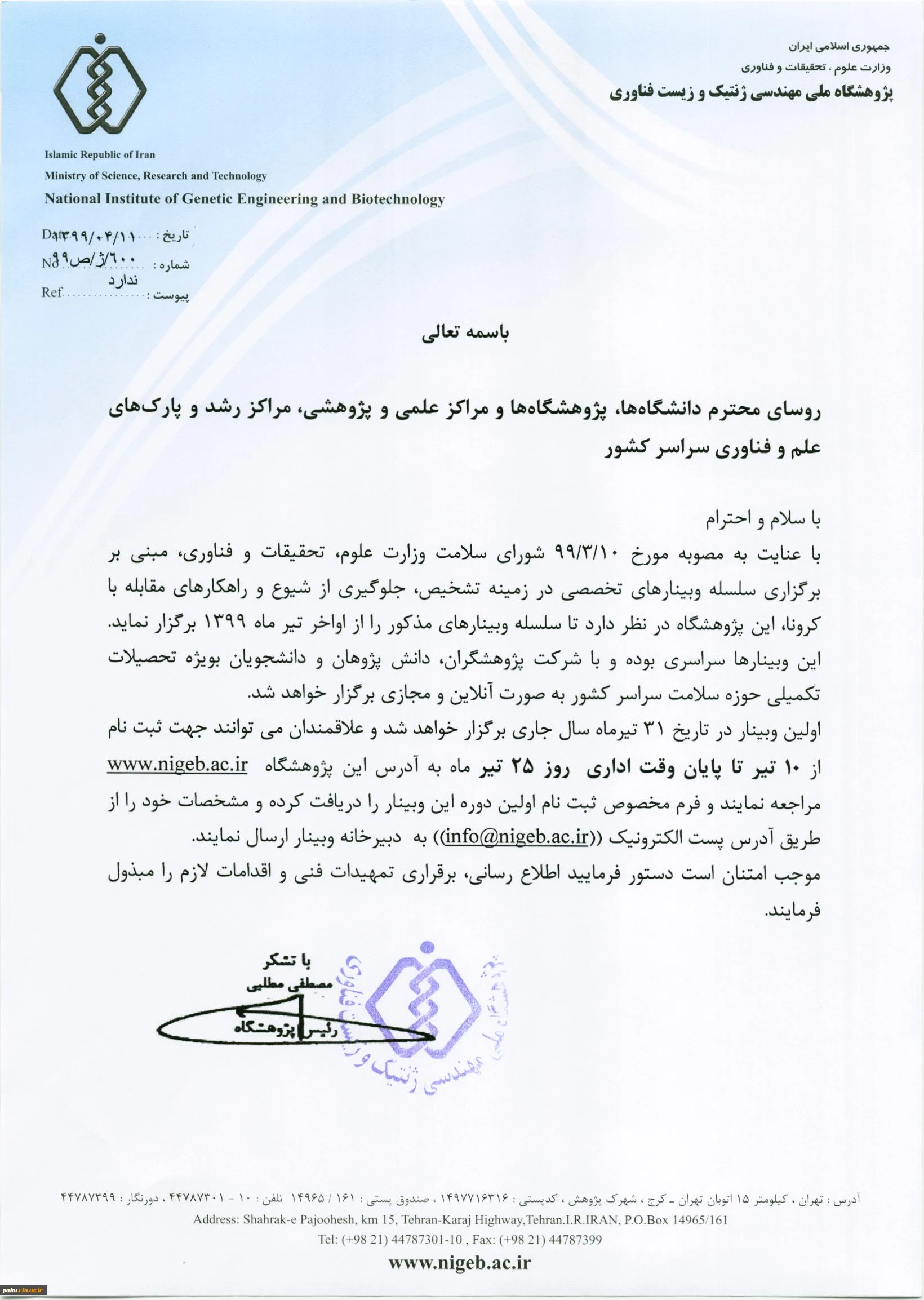 " فراخوان برگزاری وبینارهای تخصصی در زمینه تشخیص، جلوگیری از شیوع و راهکارهای مقابله با ویروس کرونا" 2