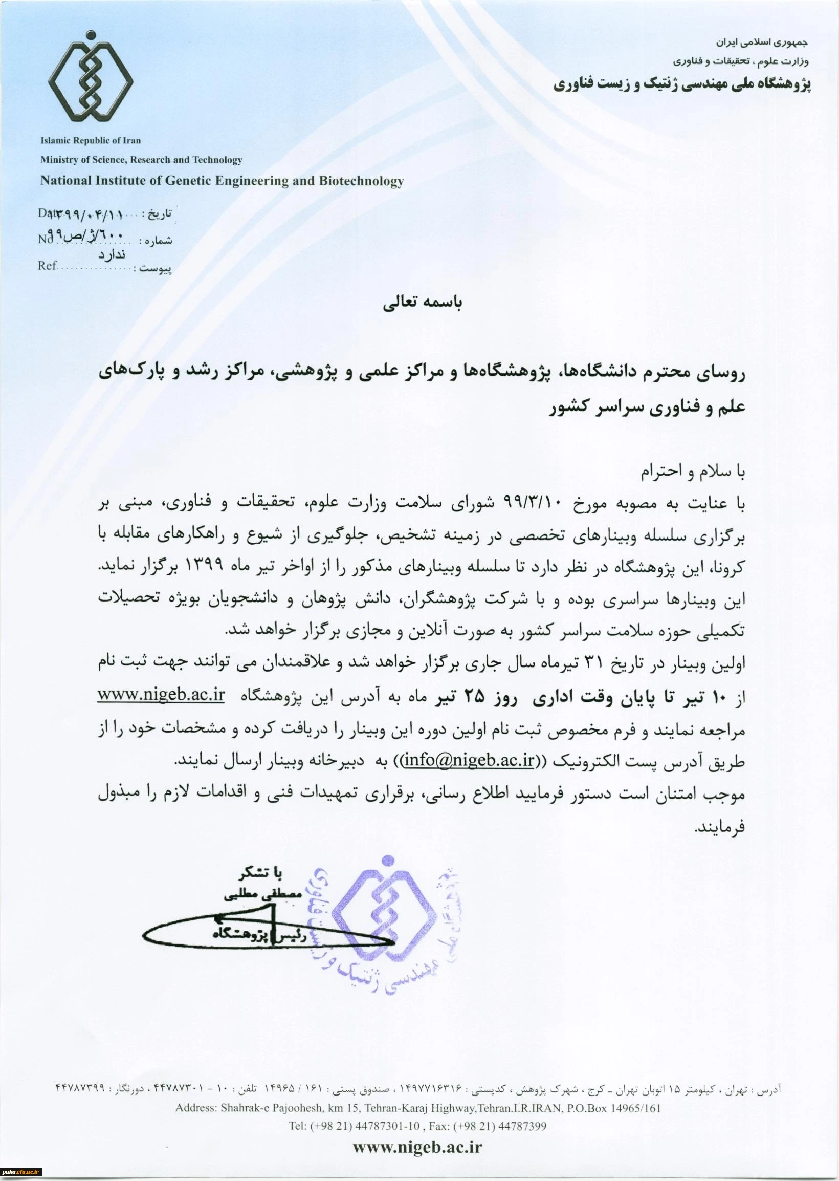 " فراخوان برگزاری وبینارهای تخصصی در زمینه تشخیص، جلوگیری از شیوع و راهکارهای مقابله با ویروس کرونا" 3