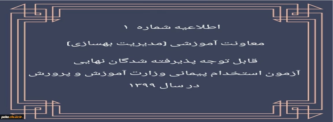 اطلاعیه شماره 1 معاونت آموزشی (مدیریت بهسازی منایع انسانی) قابل توجه پذیرفته شدگان نهایی آزمون استخدام پیمانی وزارت آموزش و پرورش در سال 1399 2