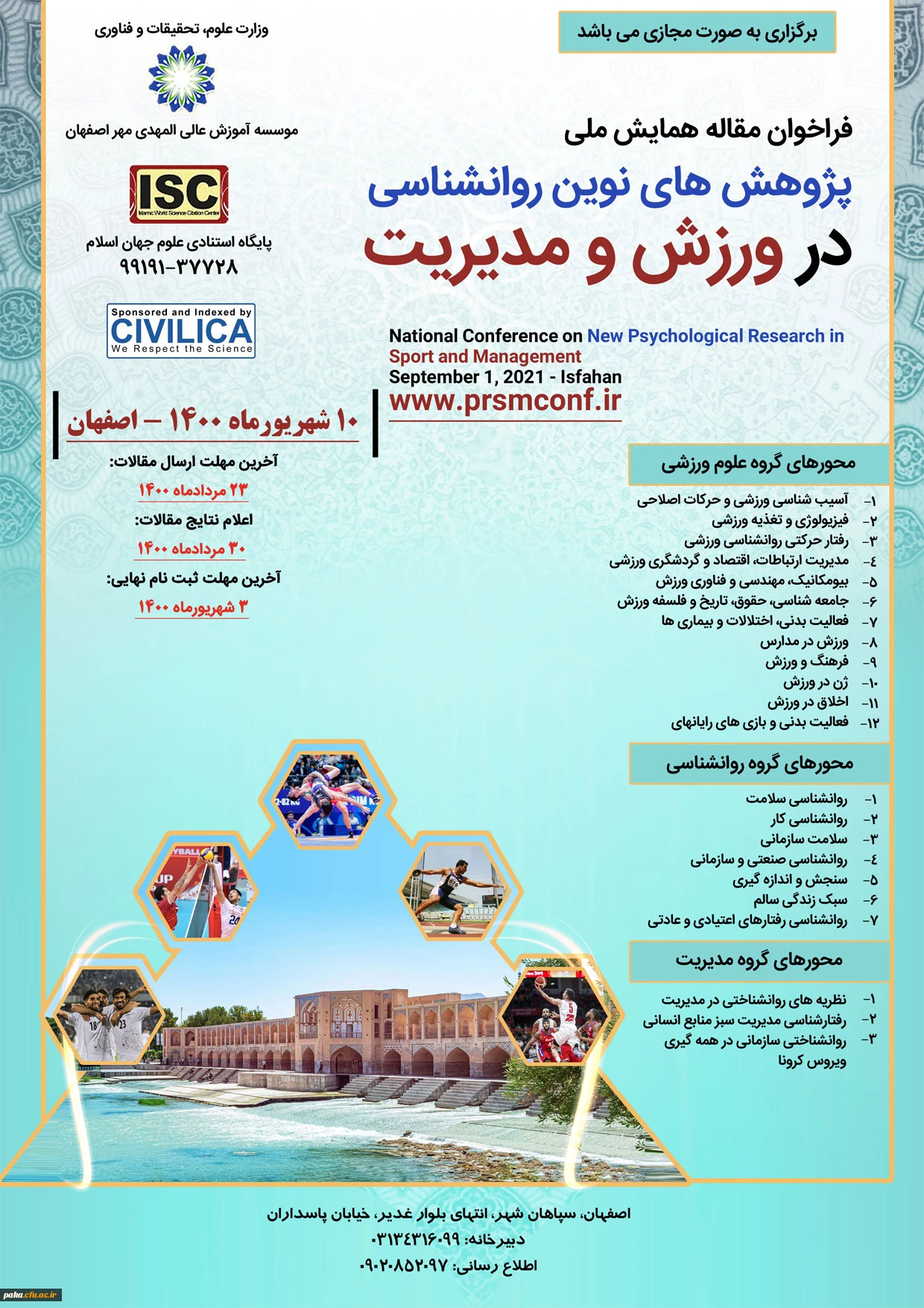 همایش ملی "پژوهش های نوین روانشناسی در ورزش و مدیریت" 2