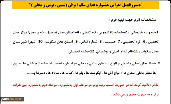 فرم ثبت نام مسابقه جشنواره غذای سالم پردیس امیر کبیر 4