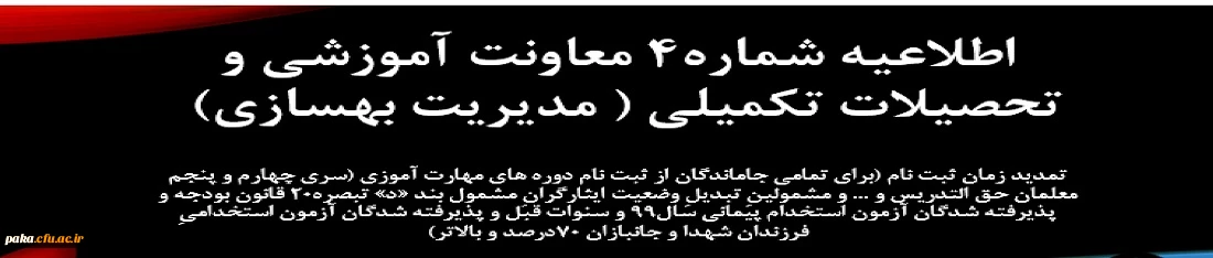 امتیاز دهید : اطلاعیه شماره 4معاونت آموزشی (مدیریت بهسازی منابع انسانی) 2 چهارشنبه 8 دی 1400 ساعت 12:34
