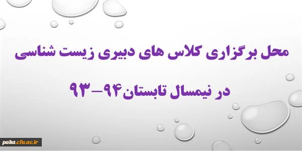 امتیاز دهید : محل برگزاری کلاسهای نیمسال تابستان94-93 رشته دبیری زیست شناسی 2 دوشنبه 8 تیر 1394 ساعت 13:11