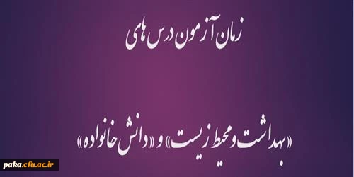 امتیاز دهید : زمان آزمون درس های «بهداشت و محیط زیست» و «دانش خانواده» 2 چهارشنبه 7 مرداد 1394 ساعت 22:41