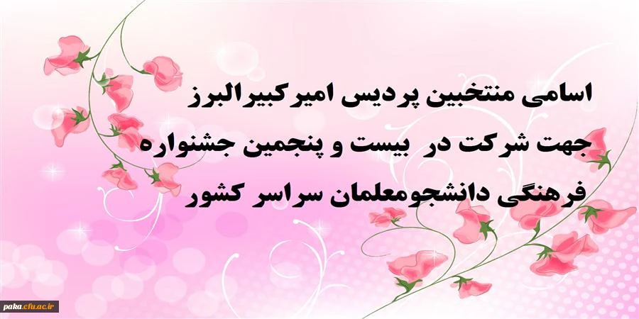 امتیاز دهید : اسامی منتخبین جهت شرکت در بیست و پنجمین جشنواره فرهنگی دانشجومعلمان سراسر کشور 2 چهارشنبه 18 شهریور 1394 ساعت 9:33