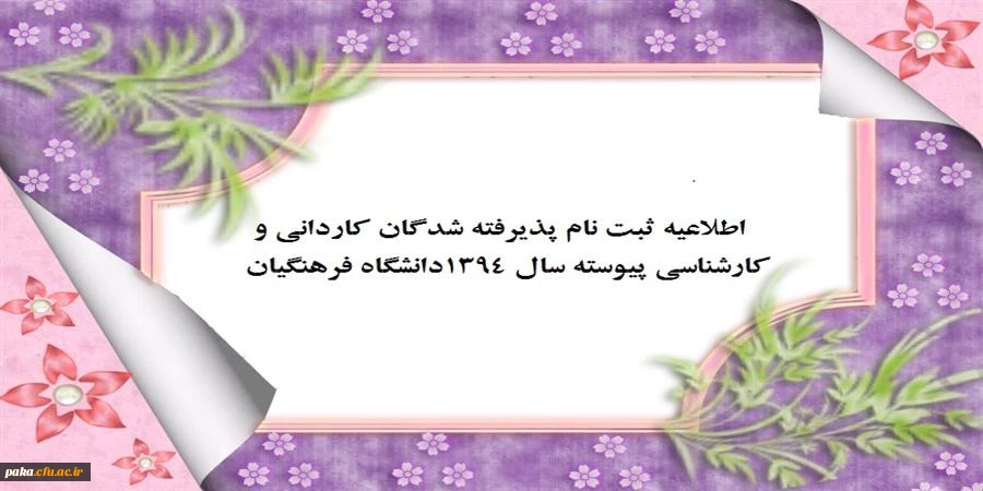امتیاز دهید : اطلاعیه ثبت نام پذیرفته شدگان کاردانی و کارشناسی پیوسته سال 1394دانشگاه فرهنگیان 2 شنبه 21 شهریور 1394 ساعت 13:42